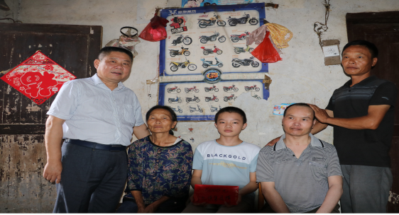 到達橋市鄉將軍沖村后,鄉黨委、鄉政府熱情接待了尹總等一行,對他們代表九恒董事長(cháng)沈云立同志捐資幫扶行為給予高度贊揚并表示衷心感謝。在鄉鎮、村干部的帶領(lǐng)下,尹總一行還深入到貧困學(xué)生家中進(jìn)行走訪(fǎng)慰問(wèn)。他們每到一處,都會(huì )與幫扶對象面對面交談、心貼心交流,詳細了解他們的家庭情況、健康狀況、經(jīng)濟來(lái)源等,聽(tīng)取他們對目前存在的困難及生活方面的訴求,并鼓勵他們樹(shù)立信心,奮發(fā)進(jìn)取,在黨和政府領(lǐng)導下早日脫貧致富。隨后,尹總代表九恒董事長(cháng)沈云立同志將愛(ài)心助學(xué)款共計50000元發(fā)放到13名品學(xué)兼優(yōu)、經(jīng)濟困難的學(xué)生手中。