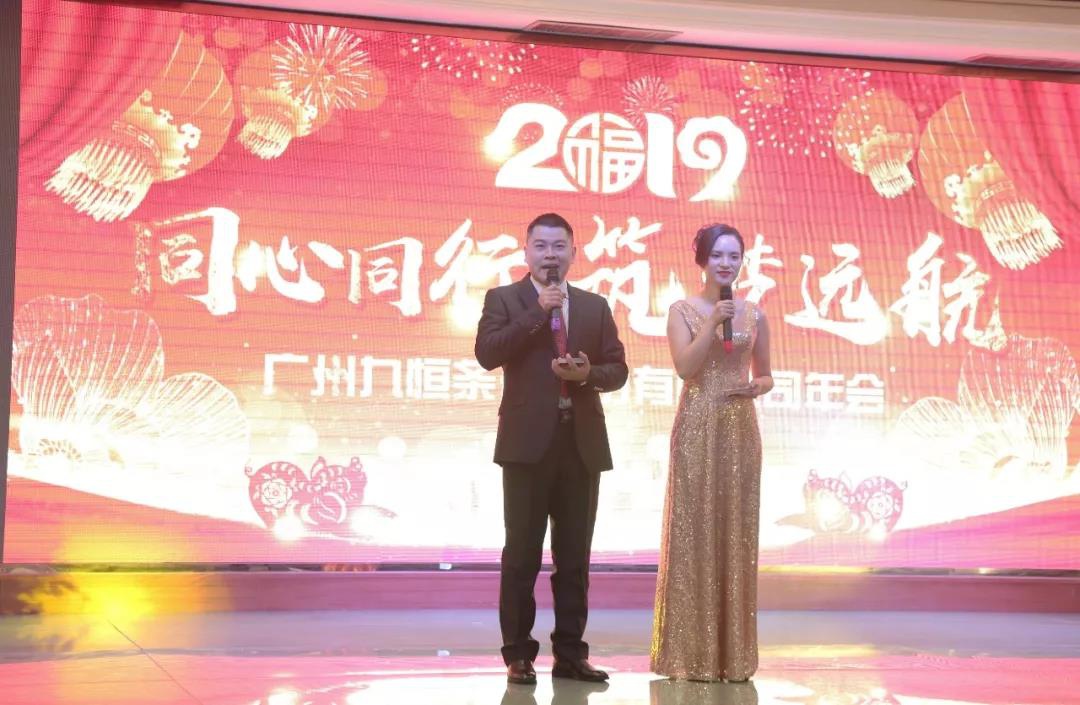 歡歌笑語(yǔ)辭舊歲,喜氣開(kāi)篇迎新年!忙碌的2018轉眼過(guò)去,全新的2019滿(mǎn)載期待走來(lái)。2019年1月5日廣州九恒條碼股份有限公司以“同心同行、筑夢(mèng)遠航”為主題的年會(huì )暨表彰大會(huì )在富景酒家隆重舉行。九恒條碼總部全體員工、各子公司管理人員及部分重要嘉賓、員工家屬等共計600多人,歡聚一堂,共襄盛典。